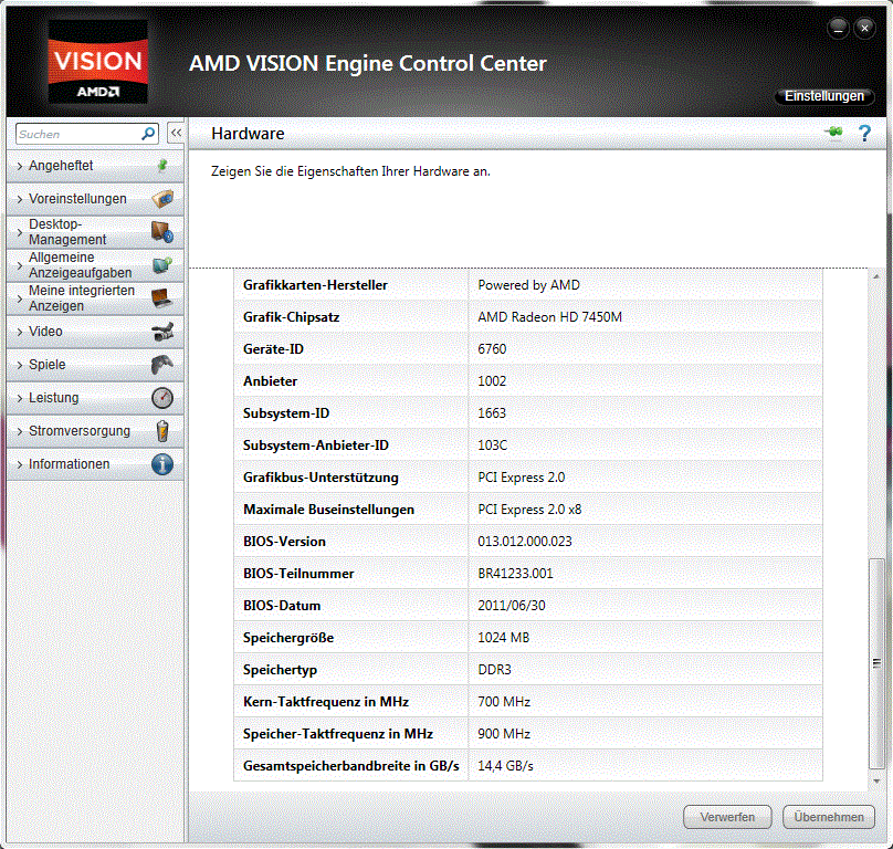 Dedizierte Grafikkarte: AMD Radeon HD 7450M