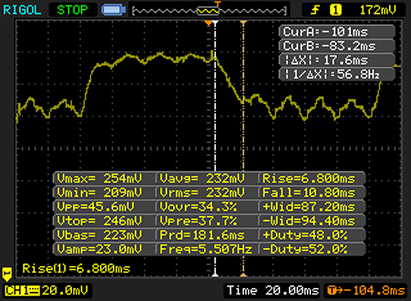 | 33 ms ... steigend ↗ und fallend ↘ kombiniert | ↗ 13 ms steigend | |