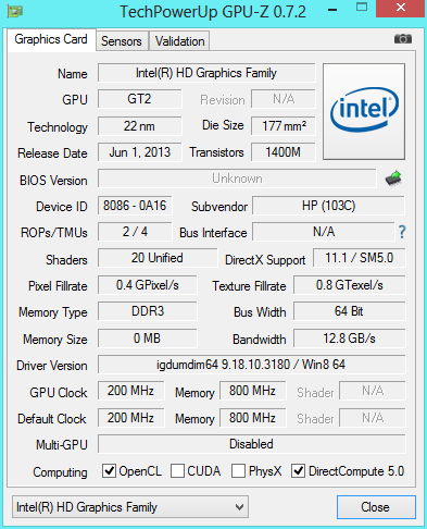 Als Grafiklösung kommt die im Prozessor integrierte Intel HD Graphics 4400 zum Einsatz. Diese ist etwas leistungsstärker als eine Intel HD Graphics 4000 in ähnlichen Prozessoren, allerdings für Computerspiele kaum geeignet.