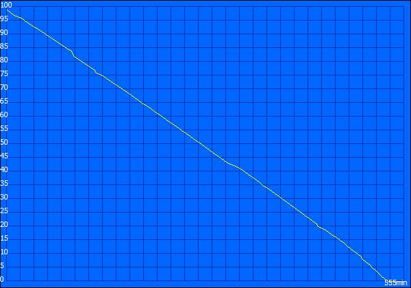 Der 13-Zoller ist mit einem 51-Wattstunden-Akku ausgestattet (4.530 mAh). Das soll laut Hersteller für eine Laufzeit von 8:30 Stunden ausreichen. Ganz weit entfernt davon ist das nicht, wir erfassen aber nur im Leerlauf 9:15 Stunden. Die Helligkeit des Displays war für diesen Test auf die geringste Stufe gesetzt, die Funkmodule waren deaktiviert und der Prozessor verharrte im Idle. Die Laufzeit könnte mitunter durch die Abschaltung nicht benötigter Geräte im BIOS etwas verlängert werden (z. B. USB 3.0, Webcam, DVD-Laufwerk).