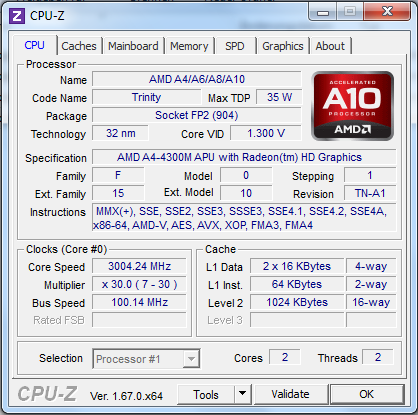 Hewlett Packard stattet das Probook mit einer A4-4300M APU aus, die auch schon beim Vorgängermodell - Probook 4545s - zum Einsatz gekommen ist. Bei dem CPU-Teil der APU handelt es sich um einen Zweikernprozessor, der mit einer Basisgeschwindigkeit von 2,5 GHz arbeitet. Mittels Turbo kann die Geschwindigkeit auf bis zu 3 GHz erhöht werden. Es handelt sich hier um eine Standard-Mobil-APU, die eine TDP von 35 Watt besitzt. Alles in allem ist die Rechenleistung der A4-4300 APU in etwa auf dem Niveau von ULV Pentiums wie dem Pentium 987 einzuordnen.