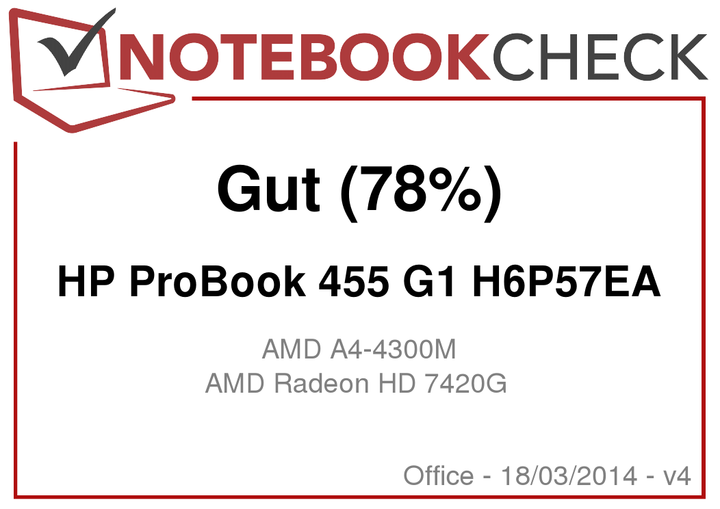 Mit dem Probook 455 bietet Hewlett Packard ein einfaches Office-Notebook für den privaten und beruflichen Einsatz an. Die Leistung des Geräts reicht für alltägliche Aufgaben aus. Auch Sicherheitsfunktionen wie einen Fingerabdruckleser oder auch Software zur Verschlüsselung hat HP nicht vergessen. Unser Testgerät ist aktuell ab etwa 450 Euro zu haben. Wer mehr Rechenleistung benötigt, kann zu einem Modell der baugleichen Probook-450-Reihe greifen, bei der Intel Prozessoren zum Einsatz kommen. Wir haben mit dem Probook 450 H0V92EA (Core i3-3120M, HD Graphics 4000) bereits ein entsprechendes Modell getestet.