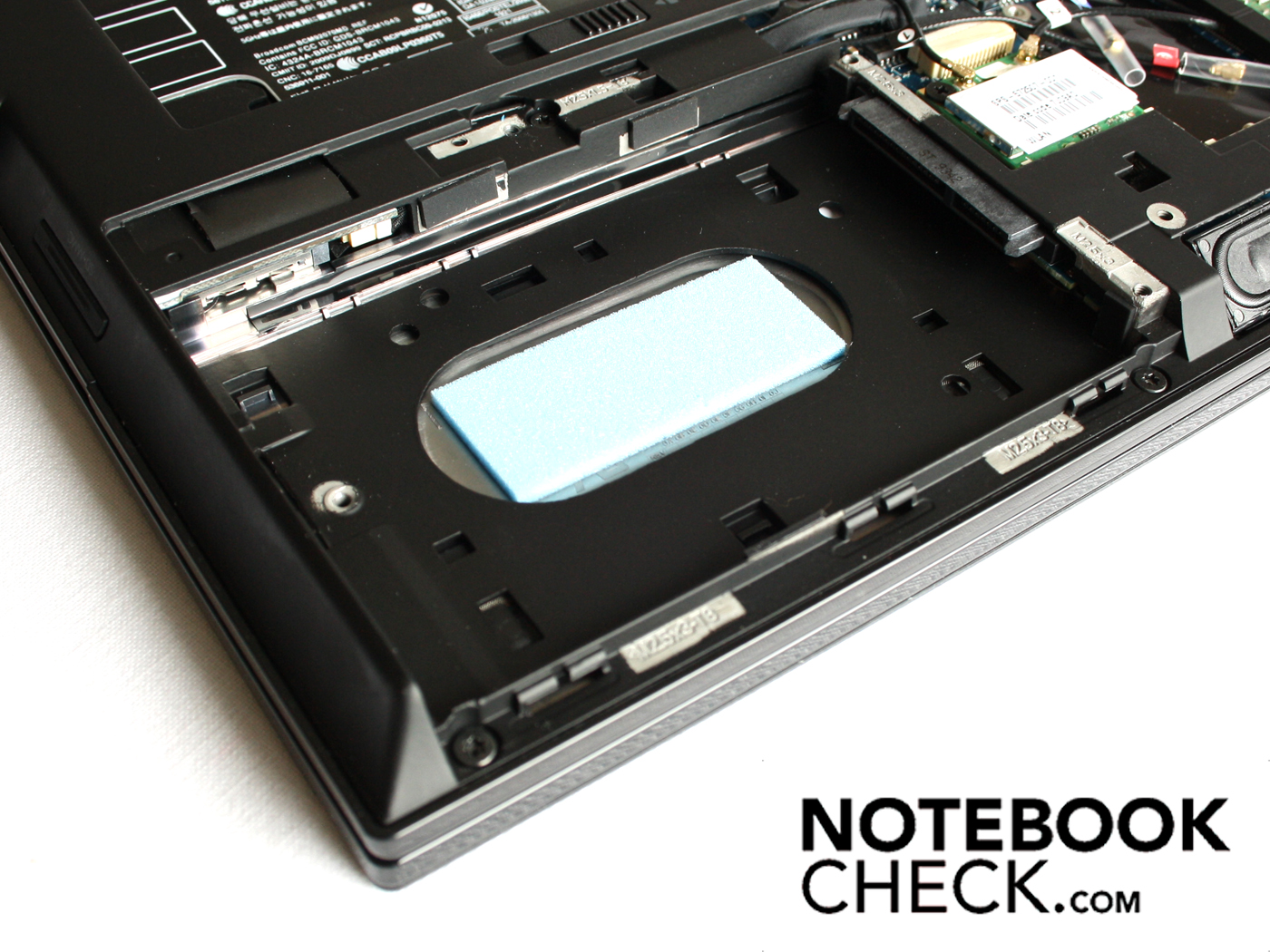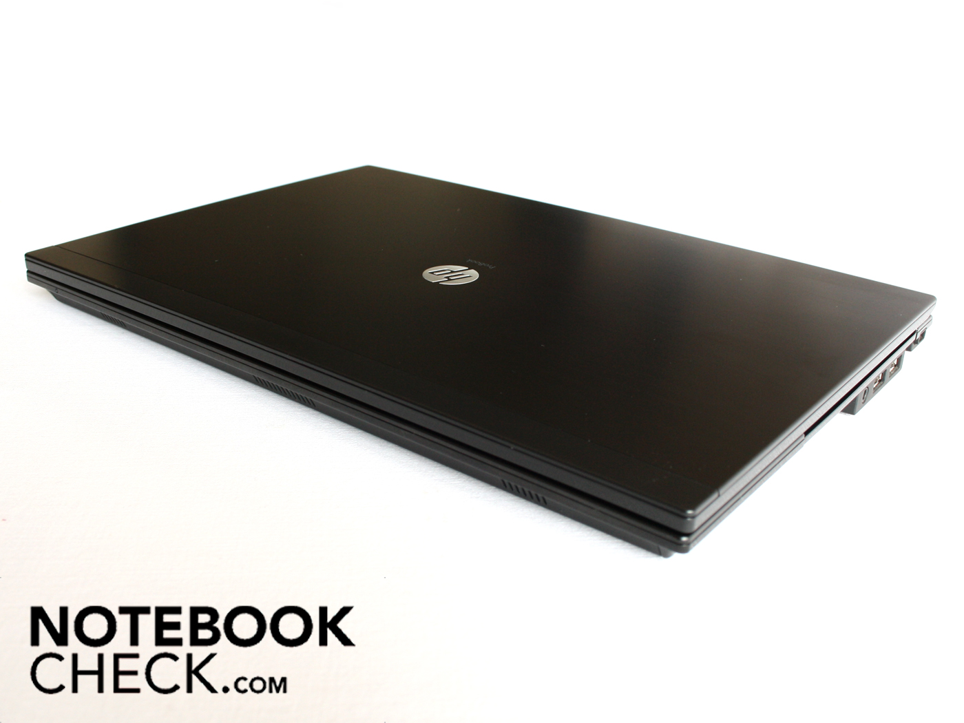Die kantige Form erweckt einen robusten Eindruck. Beim genaueren Hinsehen wird der Nutzer jedoch feststellen, dass sich das Gehäuse geringfügig verwinden lässt und dass der Akku locker sitzt. Auch den Deckel können wir, an den Ecken angefasst, deutlich verbiegen. Dies stört aber nicht den soliden Gesamteindruck. Förderlich für den guten Eindruck ist die straff sitzende Handablage. An keiner Stelle können wir diese eindellen, auch nicht unter starken Druck der Finger. Gleiches gilt für die Unterseite. Das gummierte Material, aus dem die Bodenplatte wie auch die Seiten bestehen, ist resistent gegenüber kratzenden Fingernägeln. Auffällig: Auf der Bodenplatte befinden sich keine Aufkleber. Weder Windows noch Herstellernummern haben sich hier verewigt. Diese Plaketten sind statt dessen unter dem flachen Lithium-Ionen Akku aufgeklebt. Auch die Bastler wurden von HP nicht vergessen. Es gibt eine Öffnung zum Tausch des Arbeitsspeichers (ein verbautes Modul), der Festplatte, des WLAN-Moduls und der optional einbaubaren UMTS-Karte.