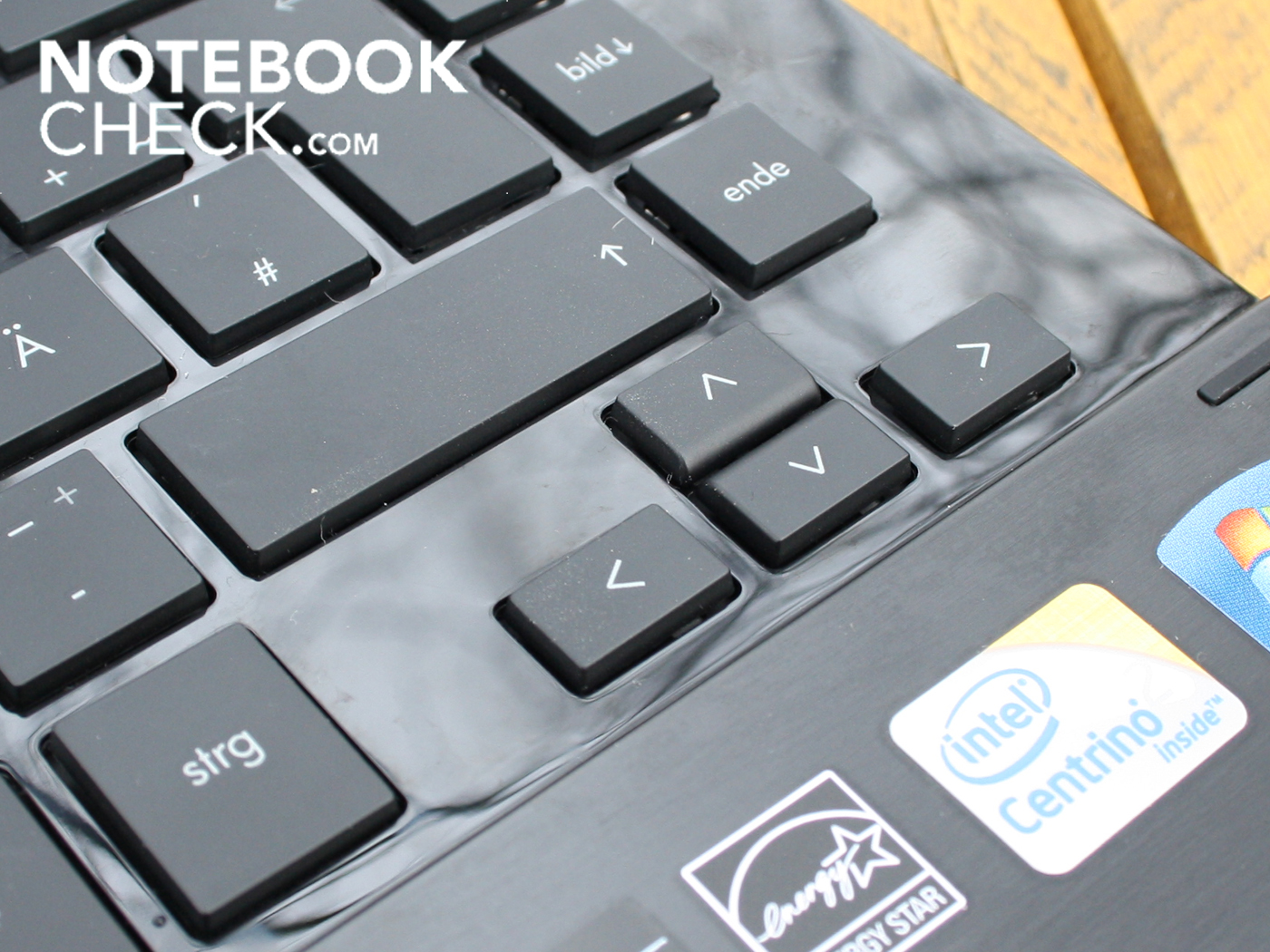 Die Eingabe lädt förmlich zum Tippen ein. Das Tastenfeld sitzt fest wie ein Brett, der Abstand zwischen den Tasten ist sehr groß und daher bestens für Blindschreiber geeignet. Hinzu kommt ein deutlicher Druckpunkt und ein fester Anschlag. Selbst die Nutzer von Pfeil- und Bild-Tasten müssen sich einmal nicht von der Notebook-Tastatur abwenden. Das Tastenlayout bietet einen sehr guten Überblick und eine hohe Treffsicherheit. Zusatztasten finden wir dezent aufgesetzt auf der rechten Seite. Die fast schon winzigen Tasten aktivieren WLAN und Bluetooth, rufen den Internet Explorer auf oder öffnen das HP Software Setup.