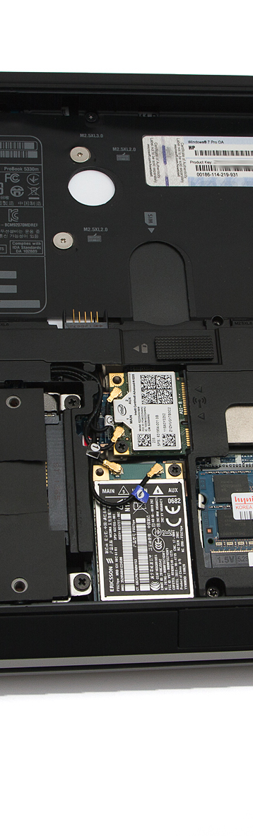 Hier bietet das HP ProBook 5330m wirklich alles, was man sich wünschen kann. Um die kabelgebundenen Verbindungen kümmert sich ein Intel 82579LM Gigabit Ethernet Adapter. Kabellose Verbindungen kann man entweder mit dem Intel Centrino Advanced-N Modul aufbauen oder mit dem HP hs2340 HSPA+ Mobile Broadband Module Network Adapter. Während sich die Intel-Karte mit WLAN-Netzen mit den WLAN 802.11 b/g/n Standards verbindet, sorgt die HP Karte für mobiles Internet unterwegs. Die HSPA+ (High Speed Packet Access) stellt eine Erweiterung für das UMTS-System dar. Dank HSDPA+ sollen Downstream-Geschwindigkeiten von 28-84 MBit/s möglich sein - sofern vom jeweiligen Provider auch unterstützt.