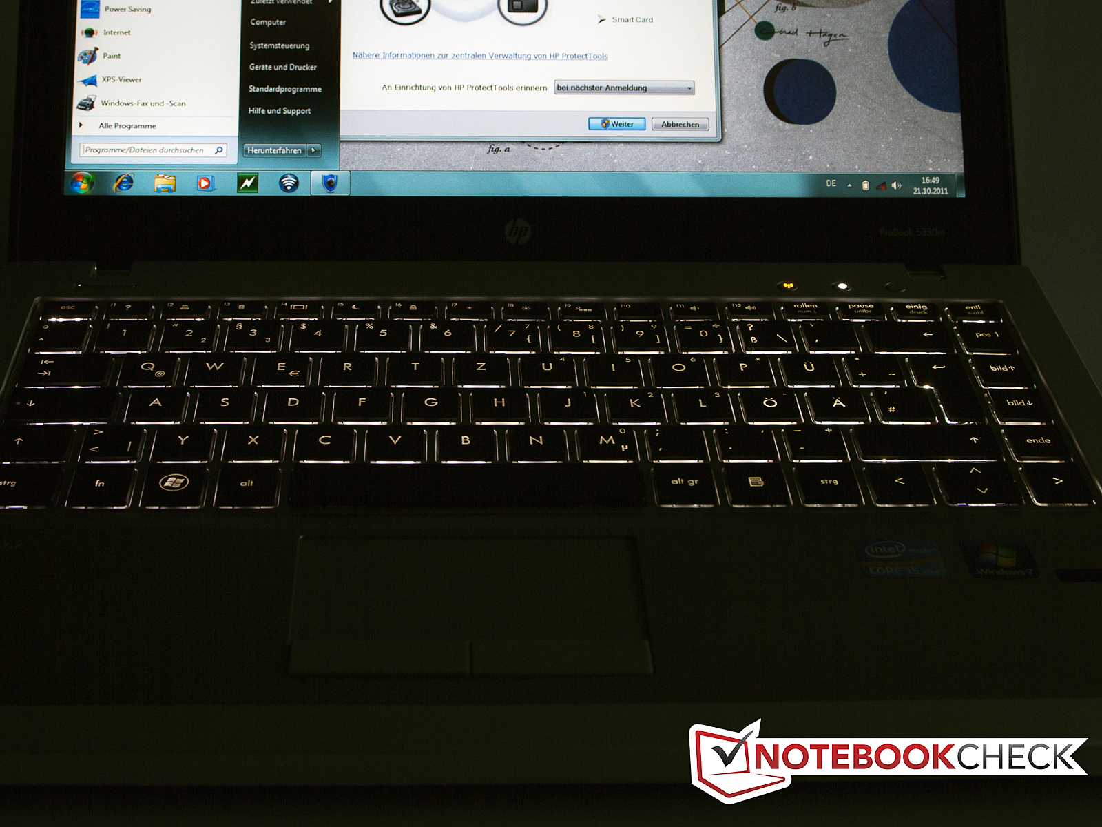 Die Optik und die Verarbeitung gehören allerdings nicht dazu - eher im Gegenteil: Hier konnte das HP ProBook 5330m richtig punkten. Die Verarbeitung war konsistent auf einem sehr hohen Niveau, und auch das Design kann durch die hochwertigen Materialien und die edle Optik überzeugen. Die Tastatur setzt den Siegeszug des Subnotebooks weiter fort, auch hier wird dem Benutzer wieder einiges für sein Geld geboten. Ein sehr gutes Schreibgefühl, Spritzwasserschutz und die Hintergrundbeleuchtung sorgen für eine positive Wertung bei der Tastatur. Des Weiteren verfügt das Subnotebook über eine sehr gute Anwendungsleistung und zahlreiche Sicherheitsfeatures.