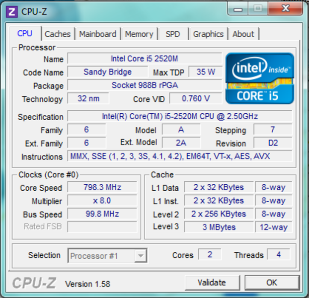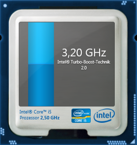 Beim verbauten Intel Core i5-2520M handelt es sich um einen der aktuellen High-End-Doppelkernprozessoren. Mit einem Basistakt von 2.5 GHz besitzt der Prozessor schon so einiges an Rechenleistung. In Verbindung mit der Turbo-Boost-Technologie lässt sich diese Leistung noch weiter steigern. Sollte es nötig sein, ist der Takt des Prozessors auf 3.0 GHz oder sogar 3.2 GHz ausweitbar. Die automatische Leistungssteigerung hängt davon ab, ob beide Prozessorkerne oder nur ein einzelner Kern belastet werden. Zudem spielt die ausreichende Kühlung des Prozessors hierbei eine wichtige Rolle. Mit seinem TDP von 35 Watt gibt sich der Prozessor gemäßigt, trotzdem wird der Prozessor erst für Notebooks ab einer Größe von 14 Zoll empfohlen. Die Abwärme, die der Prozessor produziert, muss schließlich von dem Kühlsystem auch bewältigt werden können. Die Leistung des Prozessors eignet sich neben den üblichen Büroanwendungen auch für Videoschnitt und aktuelle Spiele, vorausgesetzt die Grafikkarte macht hierbei mit.
