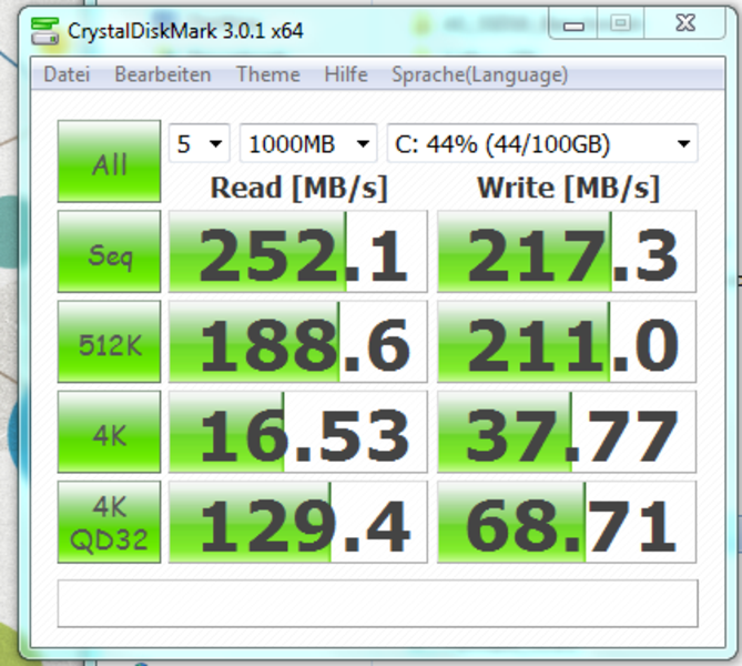Im HP ProBook 5330m kommt ein SSD-Laufwerk von Samsung zum Einsatz. Das Samsung MZ7PA128HMCD-010H1 Laufwerk besitzt eine (Brutto-) Kapazität von 128 GB. Verglichen mit anderen kürzlich getesteten Notebooks mit SSD-Laufwerken, beispielsweise dem Asus U36SD Notebook, schlägt sich das SSD-Laufwerk des HP ProBook 5330m ordentlich.