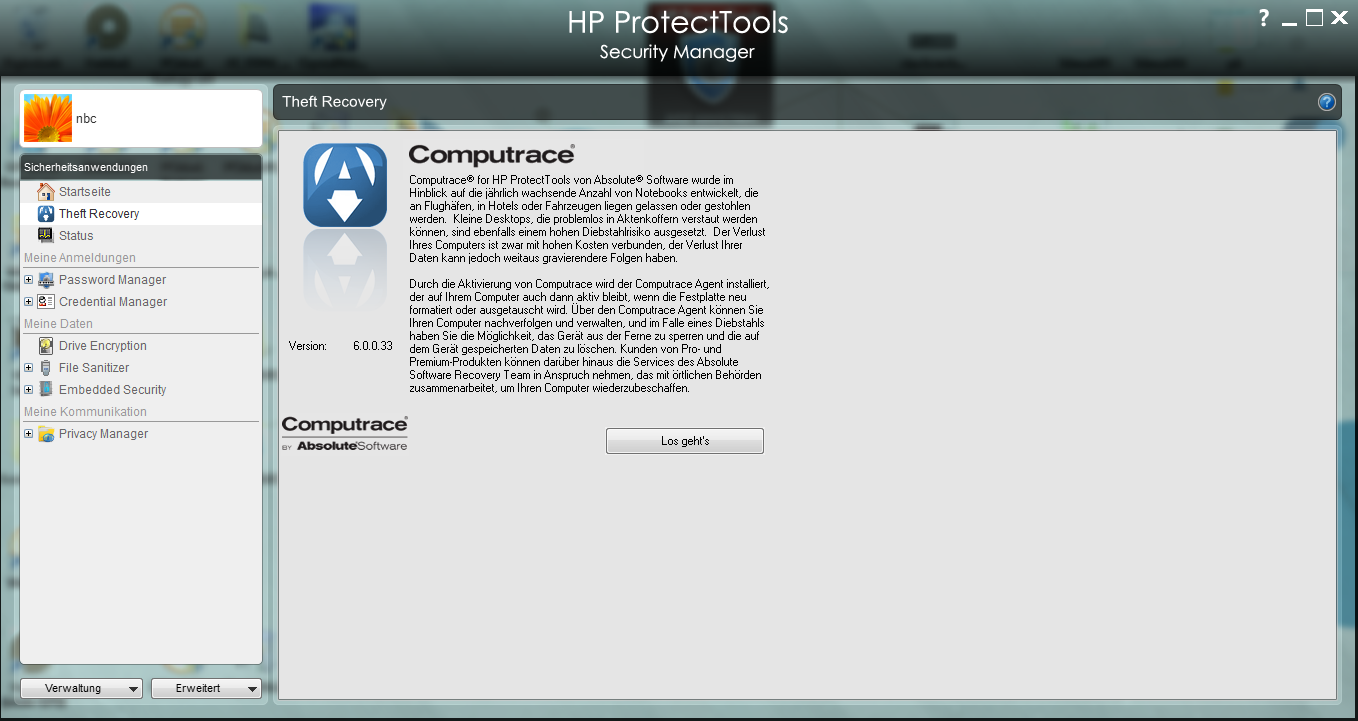 HP legt dem ProBook 5330m die HP ProtectTools bei. Hierbei handelt es sich um eine Sammlung an Sicherheitsfeatures, die das Notebook in allen möglichen Belangen absichern sollen. So lassen sich beispielsweise sämtliche Passwörter und Authentifizierungsinformationen durch die ProtectTools verwalten. Zusätzliche Software wie Intel AntiTheft und Computrace Pro kümmern sich um die Wiederbeschaffung eines verlorenen oder entwendeten Notebooks. Hierfür wird allerding ein Abo bei den entsprechenden Stellen benötigt. Der Fingerprint Reader stellt hier noch das einfachste und simpelste Sicherheitsfeature dar.