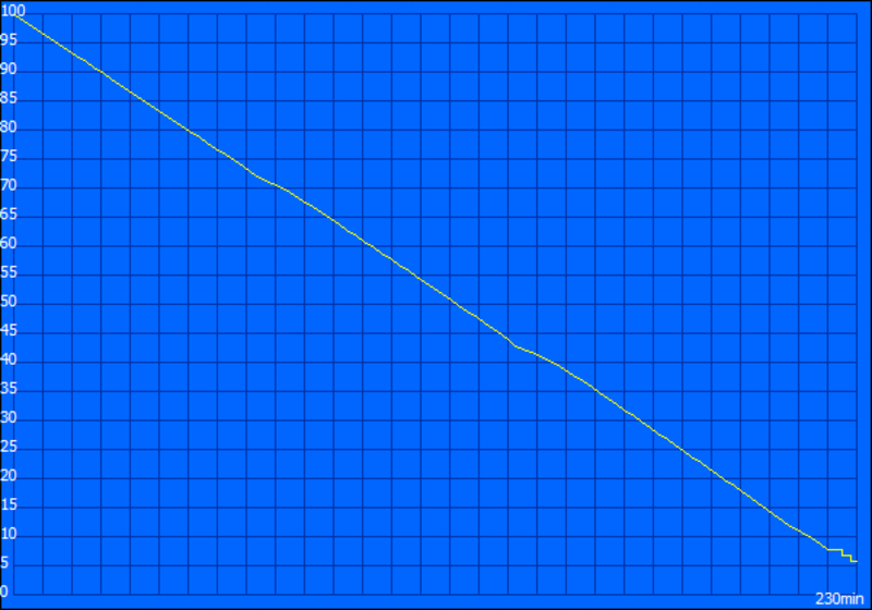 Die Verbrauchswerte deuten schon an, dass es sich bei dem HP ProBook 5330m nicht um einen Langläufer handeln wird. Um die Akkulaufzeiten des Subnotebooks zu ermitteln, nutzen wir das Programm Battery Eater Pro. Im Readers Test wird dabei der Leerlauf mit abgeschaltetem WLAN und geringer Displayhelligkeit simuliert. Hier erreicht das Subnotebook eine Akkulaufzeit von 5 Stunden 43 Minuten. Dieser Wert stellt aber eher ein theoretisches Maximum dar. Realistischer ist da unser Test beim Surfen mit WLAN und mittlerer Helligkeit. Hier kommt das Subnotebook auf eine Laufzeit von 3 Stunden und 50 Minuten. Dieser Wert sollte auch in der Praxis gut erreichbar sein. Unter Volllast sinkt die Akkulaufzeit auf 53 Minuten.
