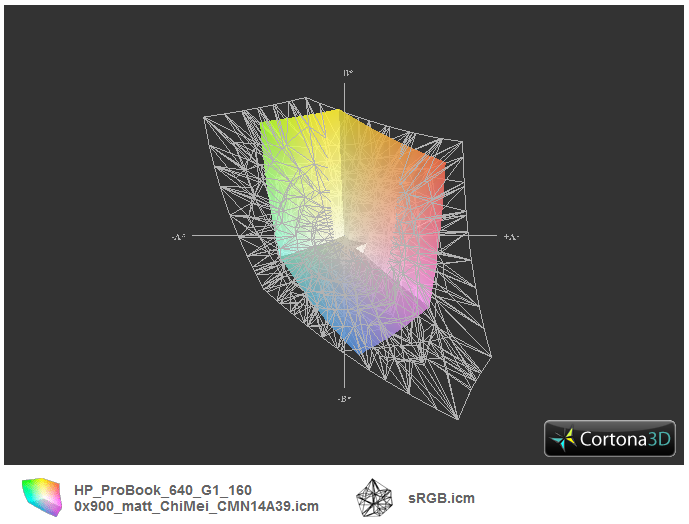 Eine wichtige Eigenschaft des ProBook 640 ist sein mattes HD+-Panel mit den 1600 x 900 Pixeln (131 ppi). Nach wie vor ist diese Auflösung gefragt, bringt sie doch eine gute Übersicht auf den Schirm, ohne mit einer zu hohen Pixeldichte zu übertreiben. Weiterhin bietet HP eine HD-Version (1366 x 768) des 640 G1 an.