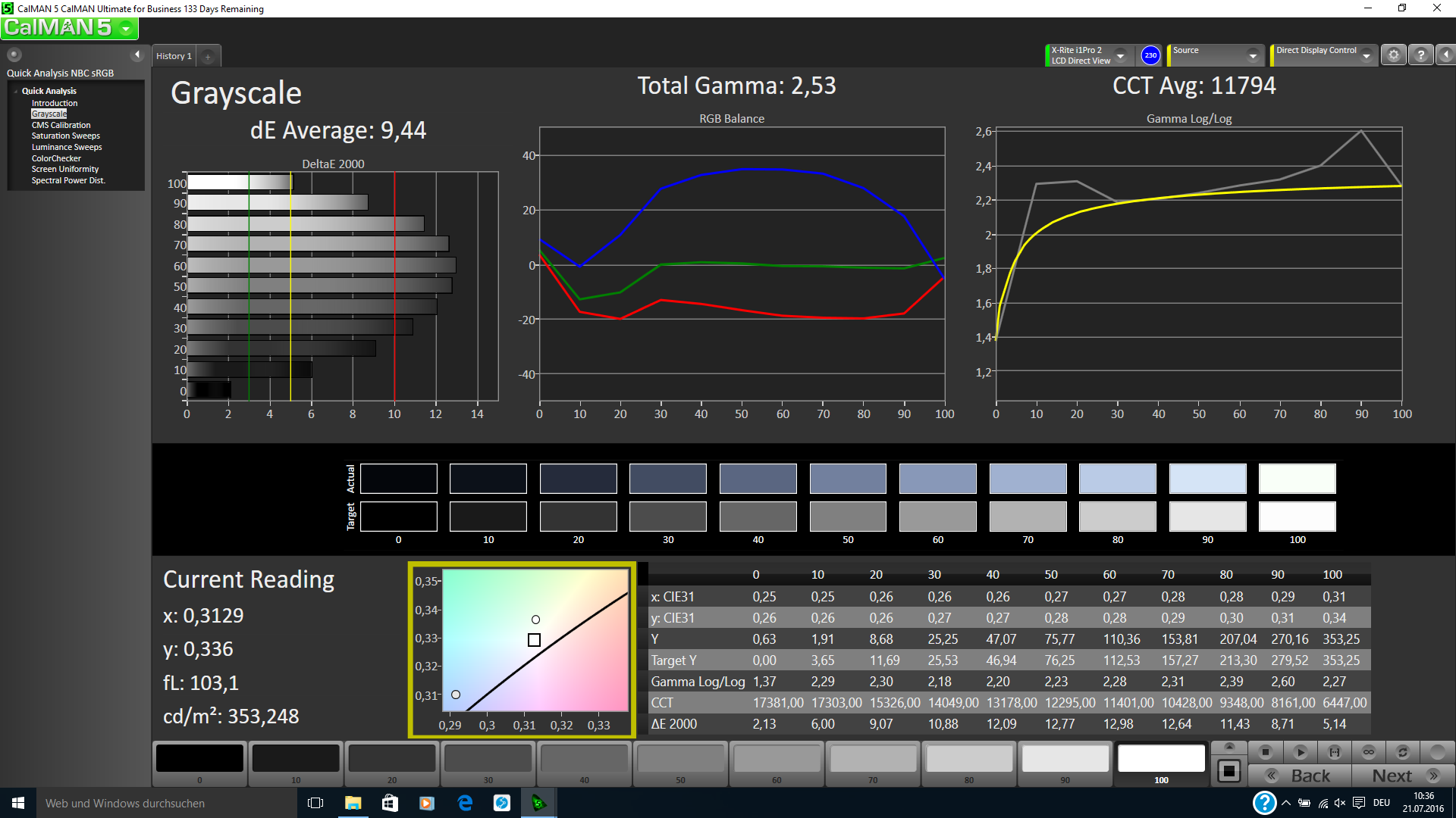 ΔE Greyscale Calman: 9.44 | ∀{0.09-98 Ø5}