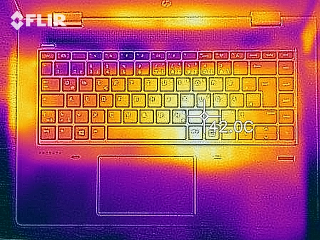(+) Die Handballen und der Touchpad-Bereich sind mit gemessenen 26.4 °C kühler als die typische Hauttemperatur und fühlen sich dadurch kühl an.