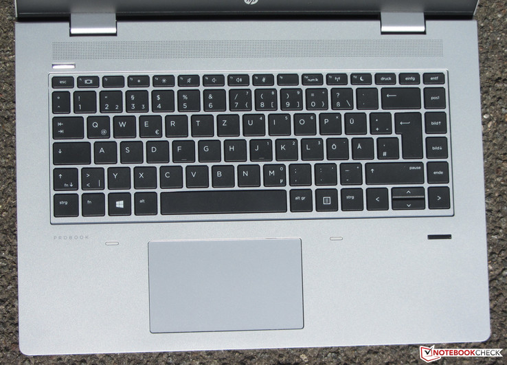 Die Chiclet-Tastatur des Probook darf als gelungen bezeichnet werden. Die angerauten Tasten erfreuen mit einem knackigen Widerstand und einem kurzen Hub. Dazu gesellt sich ein sehr präziser Druckpunkt, wie wir ihn nicht jeden Tag antreffen. Während des Tippens gibt die Tastatur in der Mitte minimal nach. Negative Auswirkungen auf das Tippgefühl hat dies nicht. Insgesamt liefert HP hier eine gute Tastatur für Vielschreiber. Leider fehlt der Tastatur eine Beleuchtung. Diese kann bei einem Notebook der hier vorliegenden Preis- und Leistungsklasse als Standardausstattungsmerkmal erwartet werden. Nichtsdestotrotz ist das Probook auch mit beleuchteter Tastatur zu bekommen.