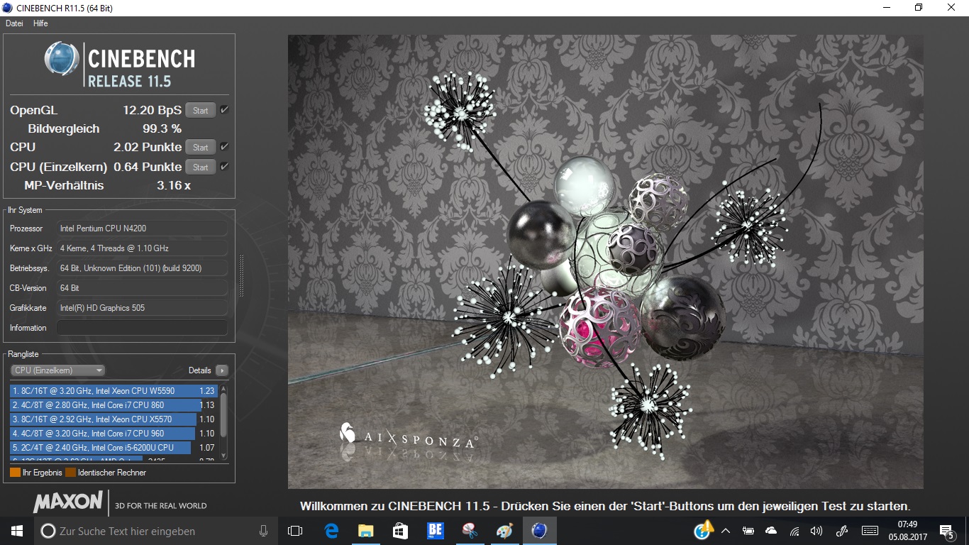 Weitere Benchmarks zum Intel Pentium N4200 finden Sie hier.