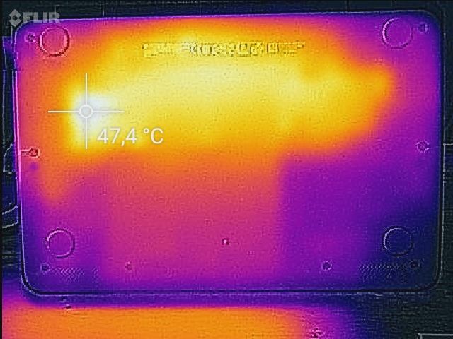(+) Die Handballen und der Touchpad-Bereich sind mit gemessenen 30.4 °C kühler als die typische Hauttemperatur und fühlen sich dadurch kühl an.