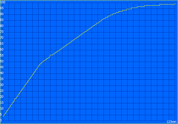 Der maximale Verbrauch überschreitet nicht einmal die Hürde von 50 Watt, was deutlich unter der Leistung des 65-Watt-Netzteils liegt.