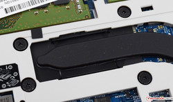 Wartungsarbeiten gestalten sich beim HP ProBook x360 440 G1 sehr nutzerfreundlich. Auf der Unterseite der Base befindet sich eine großzügige Wartungsklappe, welche mit nur einer Schraube fixiert ist. Diese ist schnell herausgedreht und auch die Wartungsklappe an sich lässt sich problemlos demontieren. Nach dem Entfernen hat man einen guten Zugang zu den verbauten Komponenten, was ein späteres Upgrade oder den Austausch defekter Teile deutlich vereinfacht.