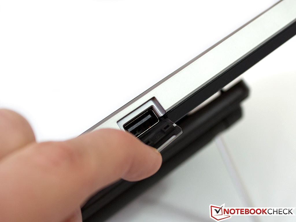 Durch die Dicke des Gerätes hätte HP ausreichend Platz gehabt, eine wahre Armada an Schnittstellen zu verbauen. Diese Möglichkeit hat der Hersteller leider nicht genutzt, auch wenn das Slate 2 zumindest einige Anschlussoptionen bietet. An der Oberseite verbirgt sich, durch eine kleine Klappe vor Schmutz und Feuchtigkeit geschützt, ein vollwertiger USB-2.0-Port. Die Probleme eines iPad-Nutzers, mal eben schnell Daten von einem USB-Stick oder einer externen Festplatte zu kopieren, werden dem Käufer des HP-Tablets somit nicht begegnen. Alternativ steht ebenso ein Speicherkartenleser im SD-Format zur Verfügung.