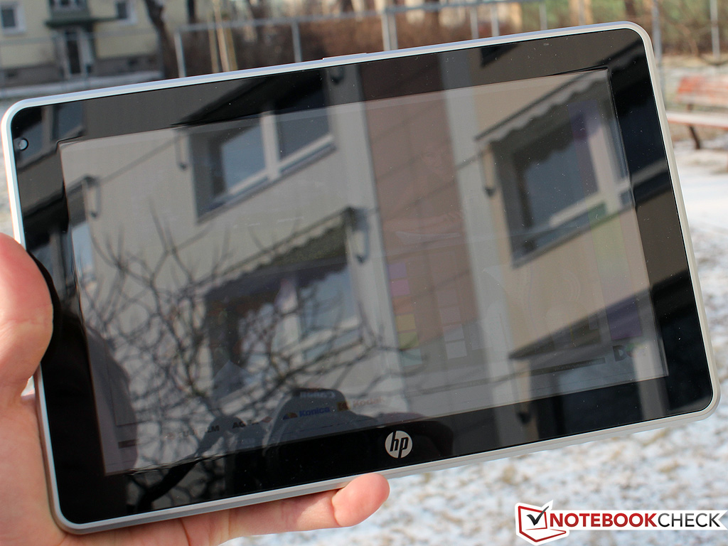 Obwohl Samsung in den Spezifikationen von einer anti-glare-Beschichtung des Displays spricht, sind in der Praxis deutliche Spiegelungen erkennbar. In Verbindung mit der geringen maximalen Helligkeit wird die Nutzung im Freien erheblich erschwert und ist auch bei bewölktem Wetter kaum möglich. Gerade für ein mobiles Tablet mit 3G-Unterstützung ist das mehr als ärgerlich, zumal selbst weitaus günstigere Modelle anderer Hersteller zeigen, wie es besser geht. HP sollte schlicht ein deutlich kräftigeres Backlight verbauen, welches eine Leuchtdichte von 300 cd/m² oder mehr erreicht.