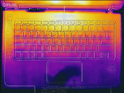 Die Gehäusetemperaturen des HP Spectre 13 sind unserer Auffassung nach deutlich zu hoch. Den Hotspot mit 54,2 °C finden wir auf der Oberseite der Base auf der linken Seite. Die Unterseite bleibt mit 37,7 °C vergleichsweise kühl.