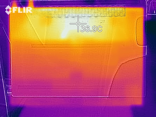 (+) Die Handballen und der Touchpad-Bereich sind mit gemessenen 27.2 °C kühler als die typische Hauttemperatur und fühlen sich dadurch kühl an.