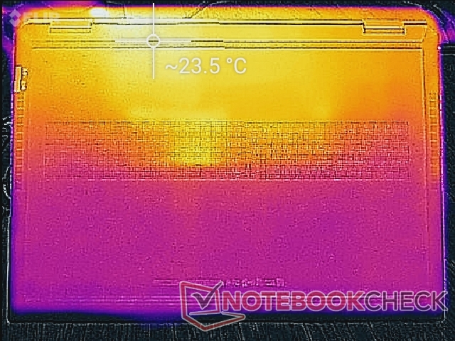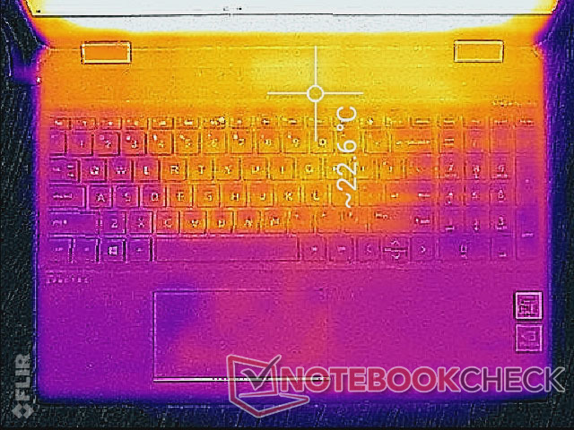 (+) Die Handballen und der Touchpad-Bereich sind mit gemessenen 29.8 °C kühler als die typische Hauttemperatur und fühlen sich dadurch kühl an.