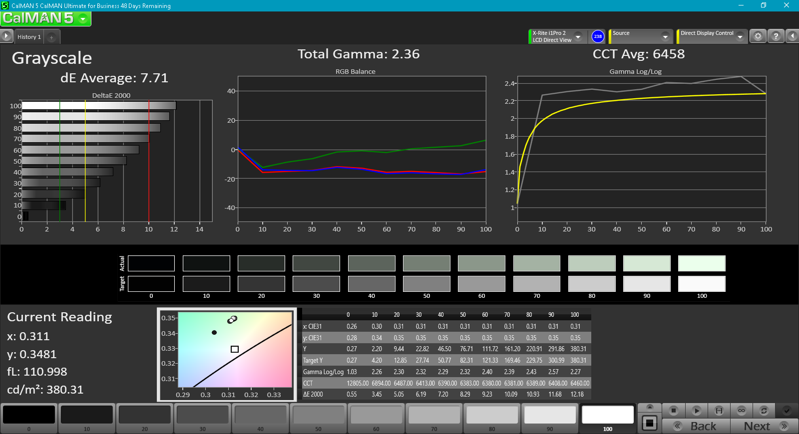 ΔE Greyscale Calman: 7.71 | ∀{0.09-98 Ø5}