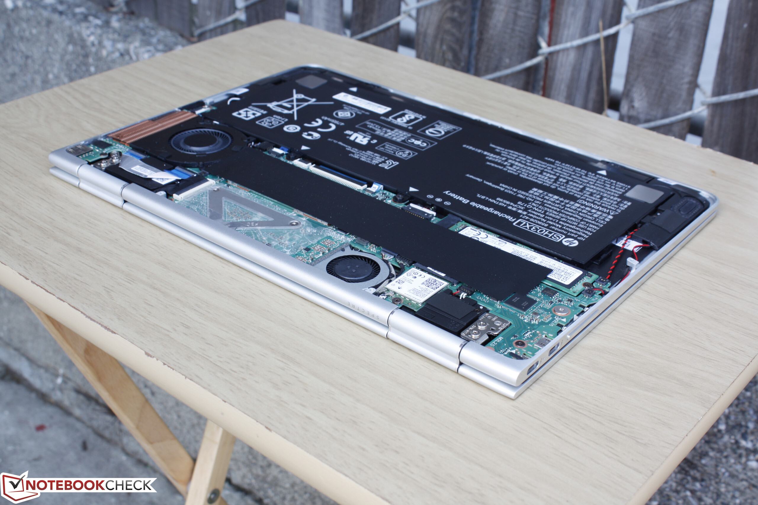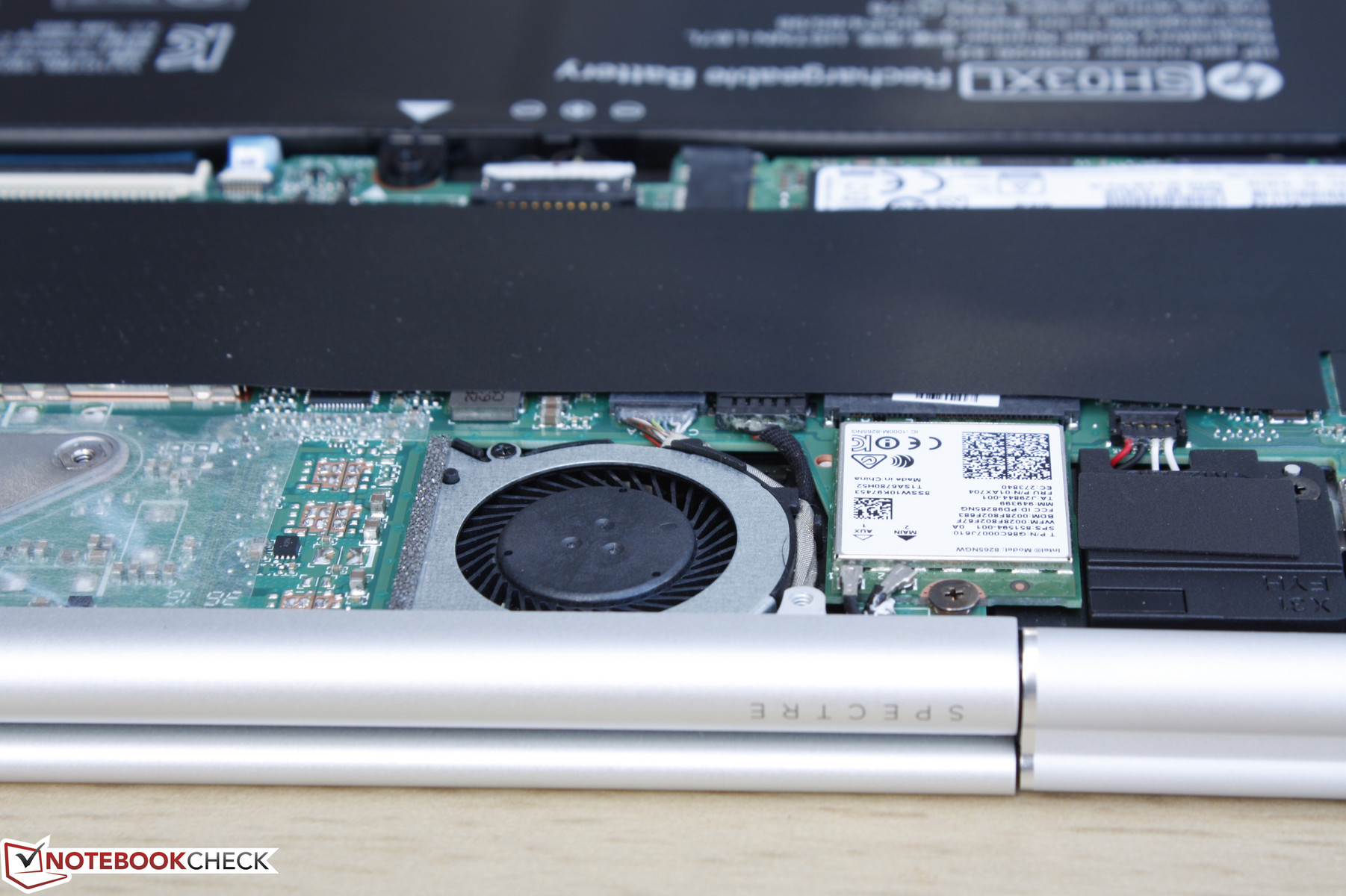 Das Spectre x360 13 nutzt zwei Lüfter, während die meisten Notebooks mit ULV-Prozessor nur einen haben. Das Lüftergeräusch ist während Textverarbeitung und Web-Surfen leise und pulsiert gelegentlich auf einen hörbaren 31,2- bis 32,5-dB(A)-Bereich unter stärkerer Last. Das passiert glücklicherweise so selten, dass der Lüfter unter Alltagslast nie stört. Wenn es allerdings auftritt, denn tendieren die Lüfter dazu, ihre höhere Umdrehungsgeschwindigkeit für eine längere Zeit beizubehalten, bevor sie wieder auf niedrigere Stufen zurückgehen.