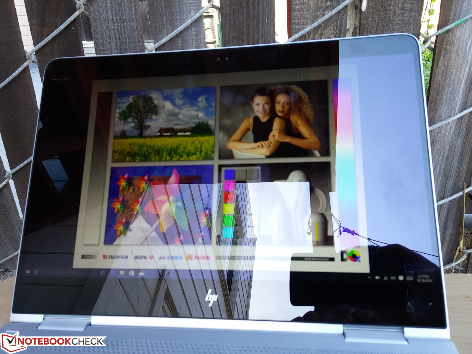 Die Lesbarkeit ist im Freien im Schatten gut und durchschnittlich unter direktem Sonnenlicht. Die Bildschirmhelligkeit ist nicht deutlich heller als bei vielen seiner Konkurrenten, und Spiegelungen am glänzenden Bildschirm können ein Problem darstellen. Wir empfehlen die Display-Power-Saver-Technologie im HD-Graphics-Control-Panel auszuschalten, denn ansonsten fällt die Helligkeit im Akkubetrieb etwas.