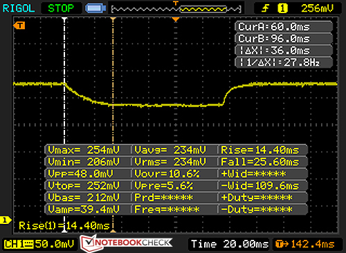 | Die gemessenen Reaktionszeiten sind gut, für anspruchsvolle Spieler könnten der Bildschirm jedoch zu langsam sein. Im Vergleich rangierten die bei uns getesteten Geräte von 0.165 (Minimum) zu 636 (Maximum) ms. » 33 % aller Screens waren schneller als der getestete. Daher sind die gemessenen Reaktionszeiten besser als der Durchschnitt aller vermessenen Geräte (31.7 ms). | ||