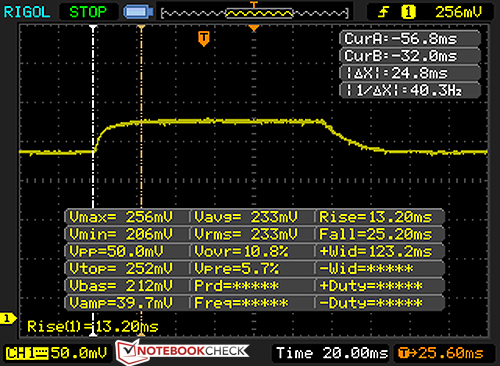 | Die gemessenen Reaktionszeiten sind gut, für anspruchsvolle Spieler könnten der Bildschirm jedoch zu langsam sein. Im Vergleich rangierten die bei uns getesteten Geräte von 0.1 (Minimum) zu 240 (Maximum) ms. » 41 % aller Screens waren schneller als der getestete. Daher sind die gemessenen Reaktionszeiten durchschnittlich (20.2 ms). | ||