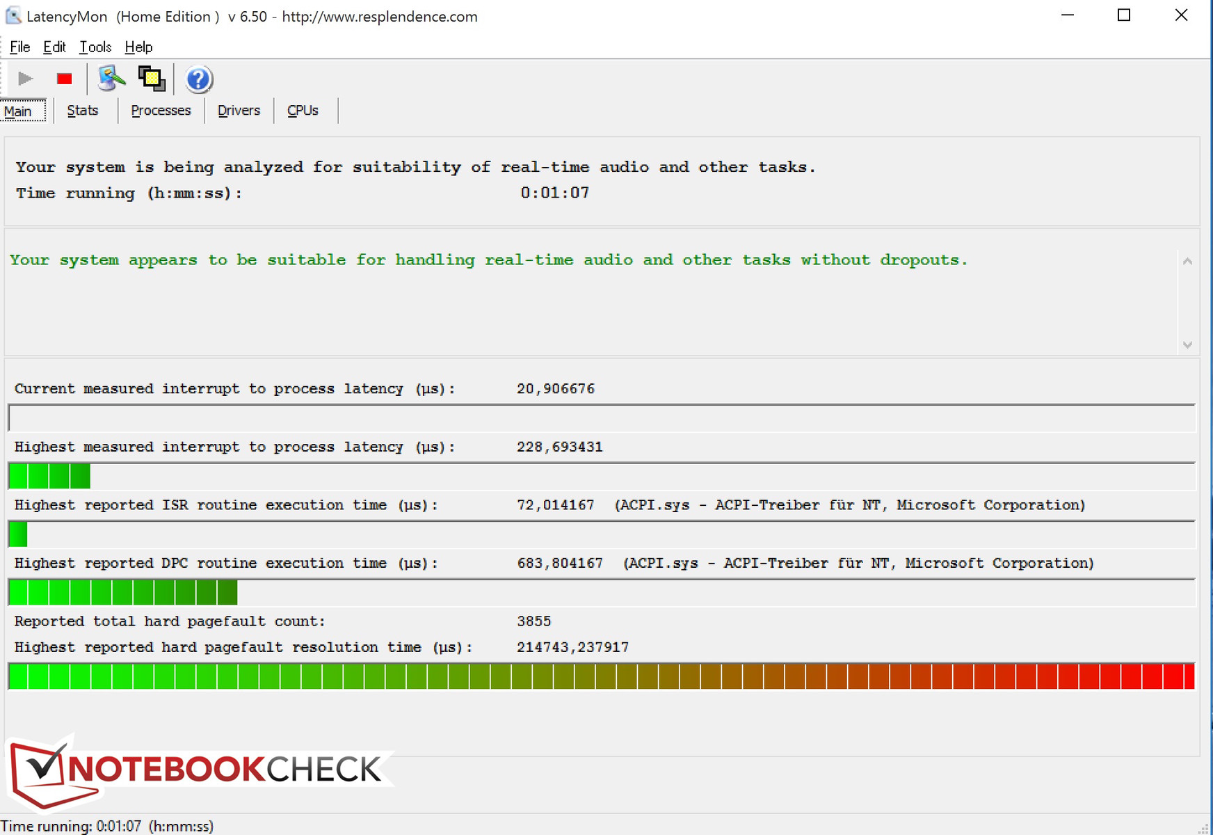 Kurz gesagt: Die Arbeit am Testgerät macht sehr viel Spaß. Die Reaktionszeiten sind stets kurz, was einen sehr angenehmen Betriebsfluss ermöglicht. Dieses eher subjektive Empfinden bestätigt der PCMark 7 mit einer Punktzahl von 4.939. Da unser bereits getestetes Modell über eine stärkere i7-CPU verfügt, schneidet es mit rund 5.100 Punkten geringfügig besser ab.