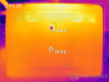 (+) Die Handballen und der Touchpad-Bereich sind mit gemessenen 22.4 °C kühler als die typische Hauttemperatur und fühlen sich dadurch kühl an.
