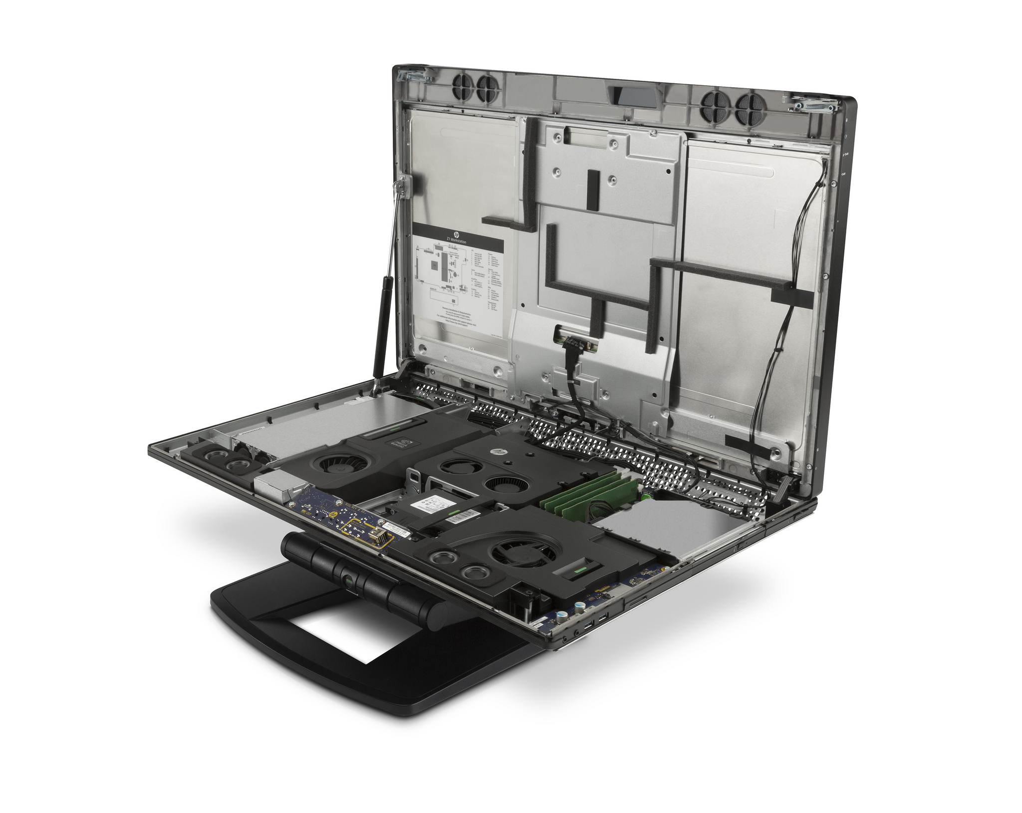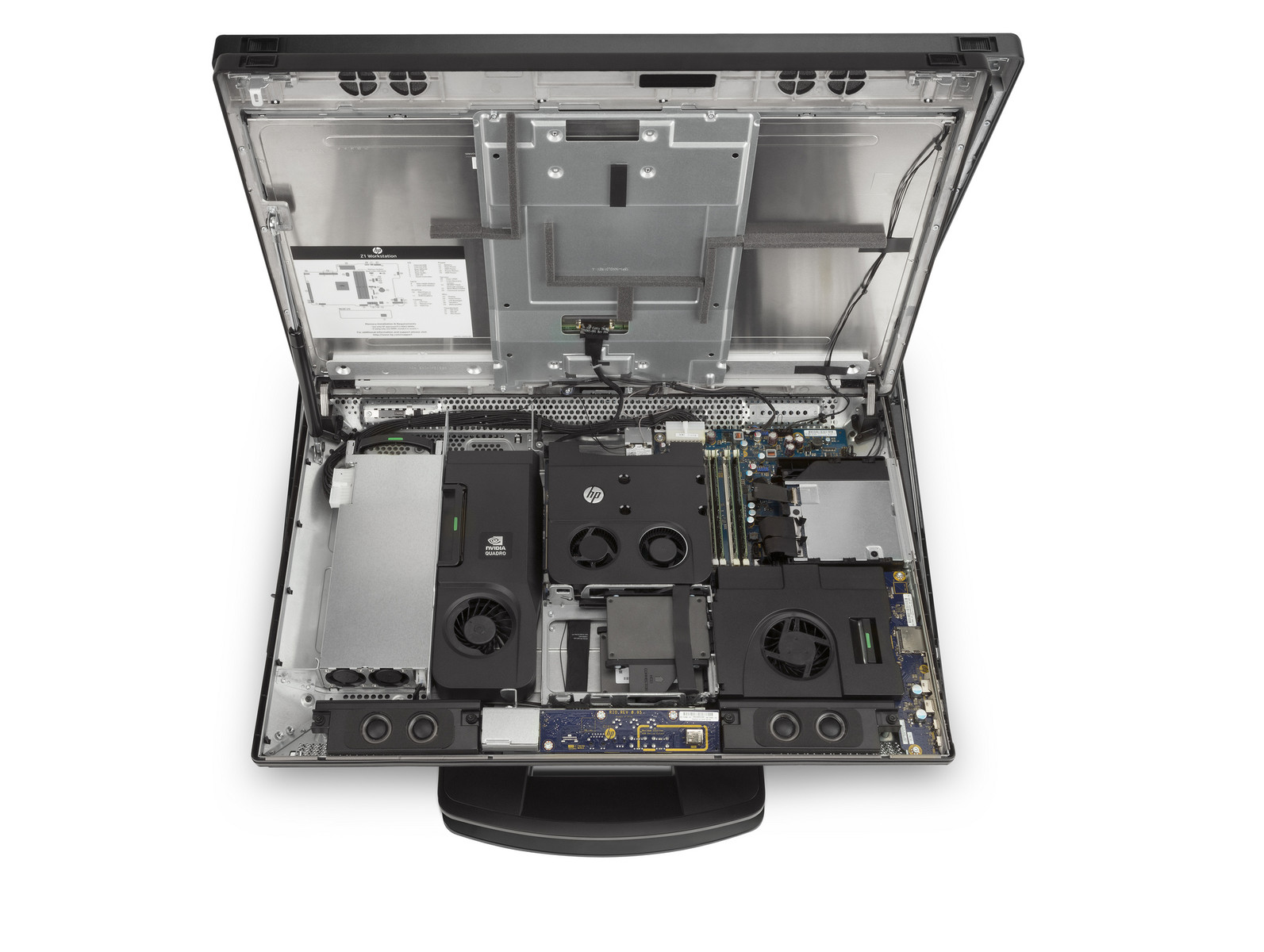 Nicht nur im Vergleich zu Apples iMac, sondern auch im Vergleich zu vielen Notebooks fallen die Wartungsmöglichkeiten vorbildlich aus. RAM, Massenspeicher und selbst die Grafikeinheit sind recht einfach zu erreichen und austauschbar. Bei einer fehlerhaften Komponente kann somit ein Wechsel in kurzer Zeit erfolgen, was zumindest in diesen Fällen die Ausfallzeit der teuren Arbeitsmaschine auf ein Minimum beschränkt. Die Aufrüstungsmöglichkeiten sind zwar vielfältig, gleichzeitig in Teilen aber an teure HP-Module gebunden. Ein Thunderbolt-2.0-Modul mit 2 Anschlüssen (E5Z73AA) kostet beispielsweise etwa 220 Euro. Wer seine Grafik aufrüsten möchte, hat zwar den standardisierten MXM-Steckplatz zur Verfügung, da HP für die Z1 Workstation die Grafikeinheiten aber mit speziellen Lüfterlösungen versieht, ist man letztlich doch an HPs Module gebunden. Für die im Testgerät verbaute Nvidia Quadro K2100M (E5Z75AA) müsste man beispielsweise etwa 500 Euro (Straßenpreis) und für die Nvidia Quadro K4100 (E5Z77AA) knapp 2.000 Euro aufbringen.