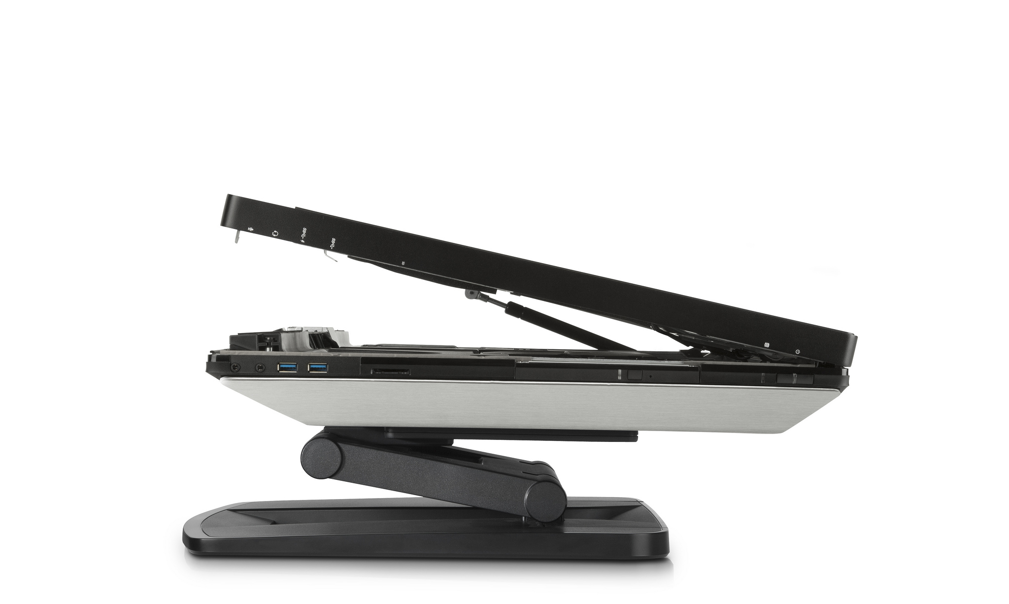Das Gehäuse des wuchtig wirkenden All-In-One ist ordentlich verarbeitet, macht einen optisch zurückhaltend hochwertigen Eindruck und überzeugt mit einer guten Stabilität. Der Standfuß verfügt über eine stufenlos verstellbare Mechanik, die keinerlei Anlass für Kritik bietet. Sie zeigt sich zwar etwas schwergängig, hält nach erfolgter Einstellung das PC-Bildschirmgehäuse aber verwacklungsfrei in Position. Lediglich auf eine Pivot-Funktion (Hochkantformat) muss man konzeptbedingt verzichten. Mit einem Gewicht von 21,32 kg und einer Bautiefe von 9 cm (ohne Standfuß) werden vergleichbare Monitore zwar deutlich übertroffen, dafür spart man sich aber auch das sonst notwendige Desktopgehäuse mit der eigentlichen Leistungssektion. Das sorgt für mehr Platz auf oder unter dem Schreibtisch. Zudem entfällt ein Teil des Kabelaufkommens, was für einen aufgeräumter wirkenden Arbeitsplatz sorgt. Vom Gewicht her kämen ein HP Z27i-Display und eine HP Z230 Workstation im Small Form Faktor auf etwa 16 kg. Im Notebookbereich wäre dieser Gewichtsunterschied von über 5 kg zwar enorm, im Desktopbereich fällt dieser aber eher nebensächlich aus. Im Vergleich zu einem HP ZBook 17 G2 beträgt der Gewichtsunterschied etwa 17 kg. Auch der Platzbedarf des Notebooks wird trotz All-In-One-Konzept, inklusive Maus und Tastatur, insgesamt deutlich übertroffen. Dafür ist der Bildschirm des Notebooks deutlich kleiner, die Leistungsfähigkeit dem Notebookkonzept unterworfen und die Erweiterbarkeit etwas eingeschränkter.