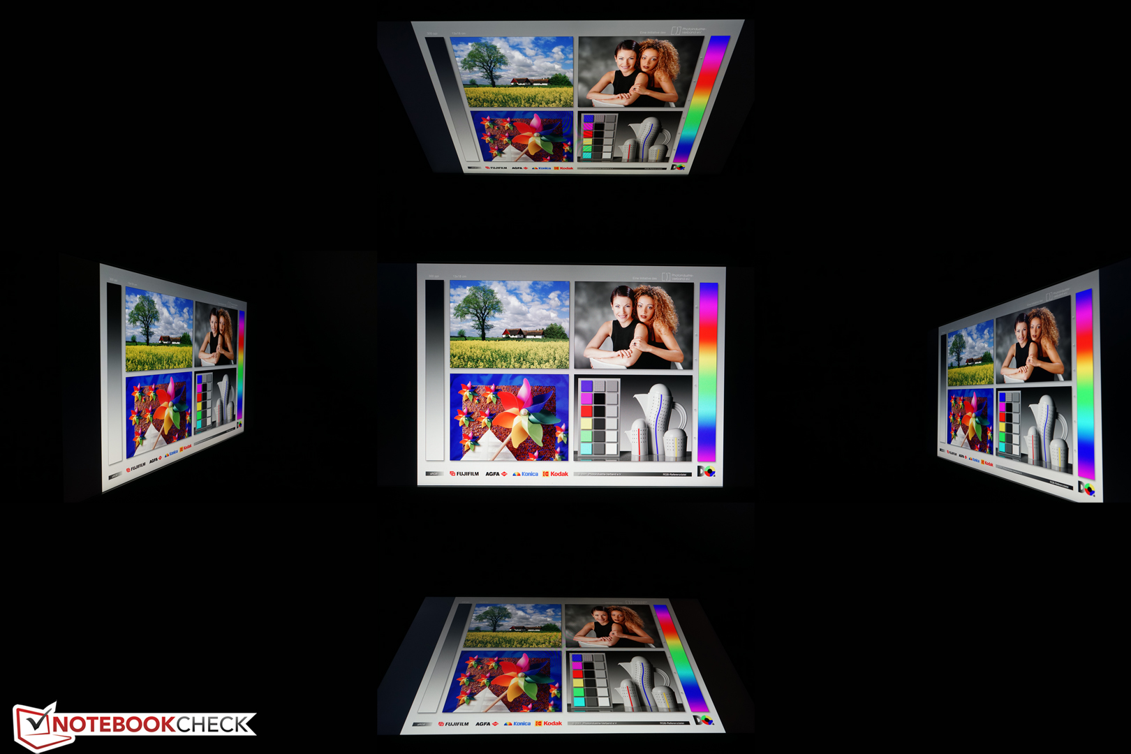 Die Blickwinkelstabilität des IPS-Panels ist sehr gut. Farbverfälschungen oder starke Helligkeits- und Kontrastveränderungen sind aus keinem Blickwinkel festzustellen. Lediglich minimaler Helligkeitsverlust aus schrägen Winkeln sowohl in der Vertikale als auch in der Horizontale ist erkennbar. Auch in diesem Punkt erfüllt das eingesetzte Display die Anforderungen, die man im professionellen Bereich zu erfüllen hat.