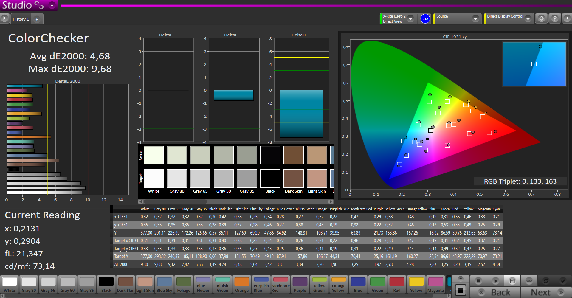 ΔE ColorChecker Calman: 4.68 | ∀{0.5-29.43 Ø4.78}