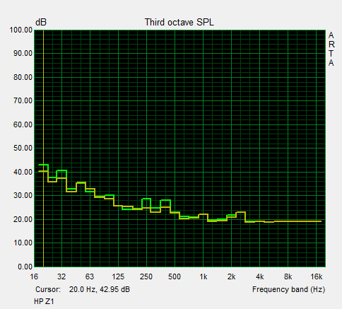 Die Soundqualität der zwei 4 Watt Lautsprecher bewegt sich auf einem ordentlichen Niveau. Mitten, Bässe und Höhen sind ausreichend vorhanden, so dass man über den Equalizer eine gute Grundlage hat, den Sound nach den eigenen Wünschen anzupassen. Die Maximallautstärke ist mit gemessenen 80 dB(A) (Pink Noise) gut und wird verzerrungsfrei wiedergegeben. Neben dem Mikrofoneingang und dem Kopfhörerausgang an der Seite verfügt die HP Z1 G2 Workstation an der Rückseite über zwei Audio-Line-in-, einen Subwoofer- und einen SPDIF-Anschluss. Hierdurch bekommt man einige zusätzliche Möglichkeiten in die Hand gelegt, die über das Normalmaß hinausgehen, um externe Boxen- und Audiolösungen anzuschließen.