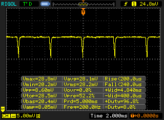 Verringert man die maximale Helligkeit nur um eine Stufe (95 Prozent HP My Display), so setzt bereits die Pulsweitenmodulation (PWM) ein. Bei empfindlichen Nutzern kann dies zu Ermüdungserscheinungen, Augenbrennen, Kopfweh und auch sichtbarem Flackern führen. Die beim Testgerät gemessene Frequenz von 200 Hz ist relativ gering, so dass ein Flackern von den meisten Menschen wahrgenommen wird. Der kombinierte Schwarz-Weiß-Wechsel benötigt 30,2 ms, der Grau-zu-Grau-Wechsel 44,2 ms. Beides für Spieler rasanter Games deutlich zu langsam.