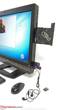 Für die Eingabe stehen dem HP Z1-Nutzer serienmäßig eine recht große Standardtastatur und eine Maus zur Verfügung. Der Bildschirm mit Touchoberfläche ist dagegen lediglich optional erhältlich und in unserem Testgerät nicht verbaut. Maus und Tastatur warten mit den üblichen Eigenschaften ausgewachsener Desktop-Komponenten auf. Die Tastatur verfügt über normal große Tasten mit knackigem Druckpunkt und angenehmem Anschlag. Vielschreibern wird diese Eingabe gefallen. Der separate Nummernblock erleichtert die Eingabe langer Zahlenreihen und die FN-Kombinationen bieten einige Schnellzugriffe. Leider hat HP hier keine Möglichkeit integriert, um die Displayhelligkeit zu steuern.