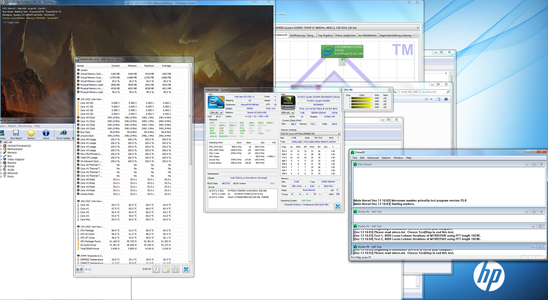 Eine Leistungsdrosselung können wir auch nach langen Lastphasen nicht beobachten. Bei unserem Stresstest mit Furmark und Prime95 taktet der Prozessor konstant mit 3,5 GHz.