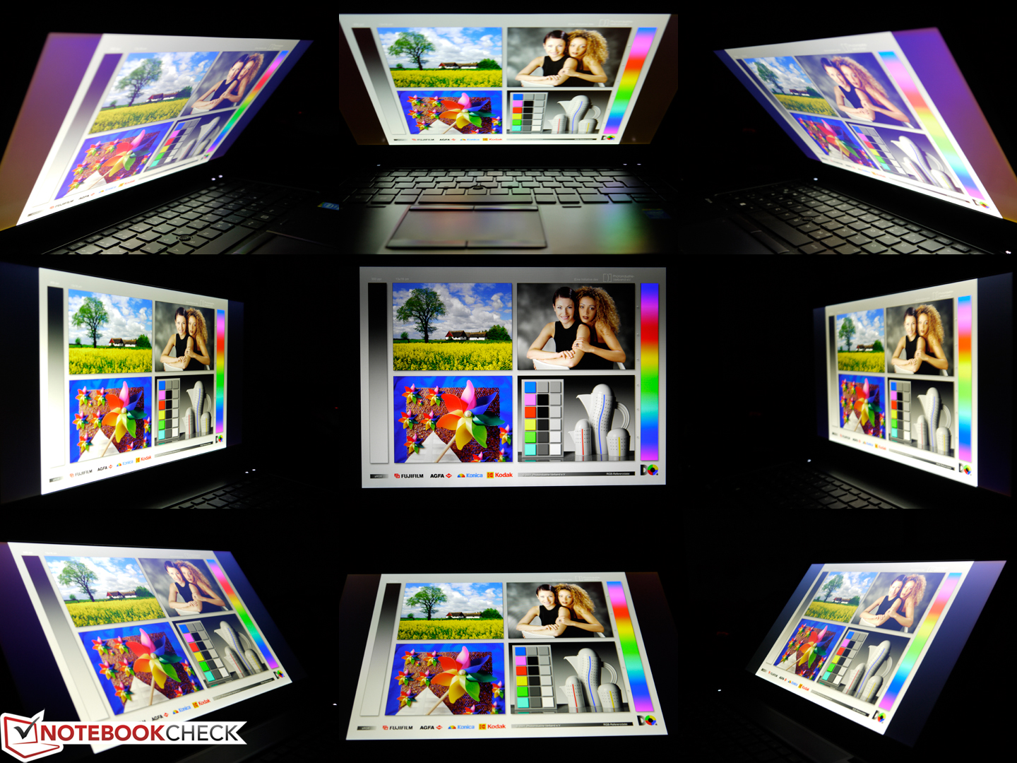 Die Blickwinkelstabilität ist insgesamt sehr gut und bietet über weite Teile des Displays eine unveränderte Darstellung. Farben, Helligkeit und Kontrast variieren je nach Einblickwinkel nur wenig. Lediglich aus spitzen Winkeln von der Seite kann man einen Rotstich erkennen. Insgesamt hat HP mit dem hier verbauten Display eine gute Lösung gefunden, der man die kleinen Nachteile bei der Farbraumabdeckung in vielen Einsatzbereichen gut verzeihen kann.