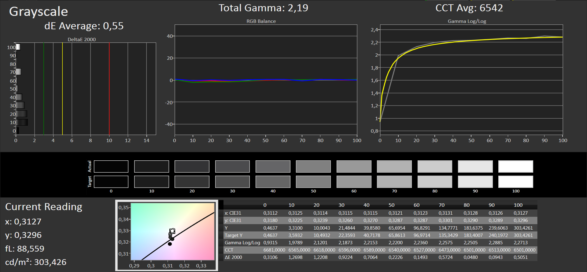 ΔE Greyscale Calman: 4.59 | ∀{0.09-98 Ø5}