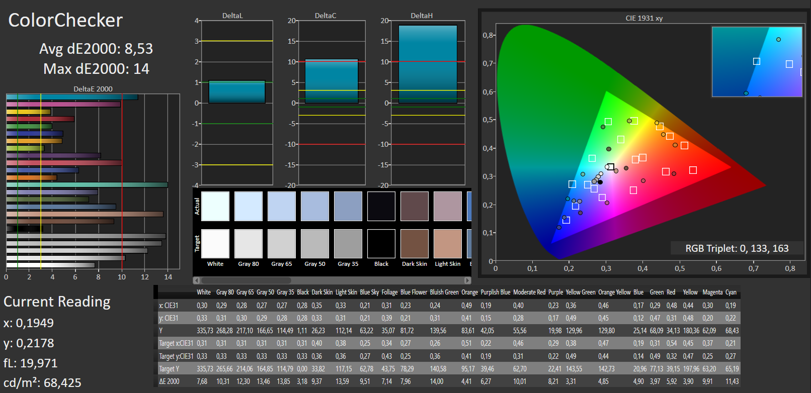 ΔE ColorChecker Calman: 8.53 | ∀{0.5-29.43 Ø4.78}