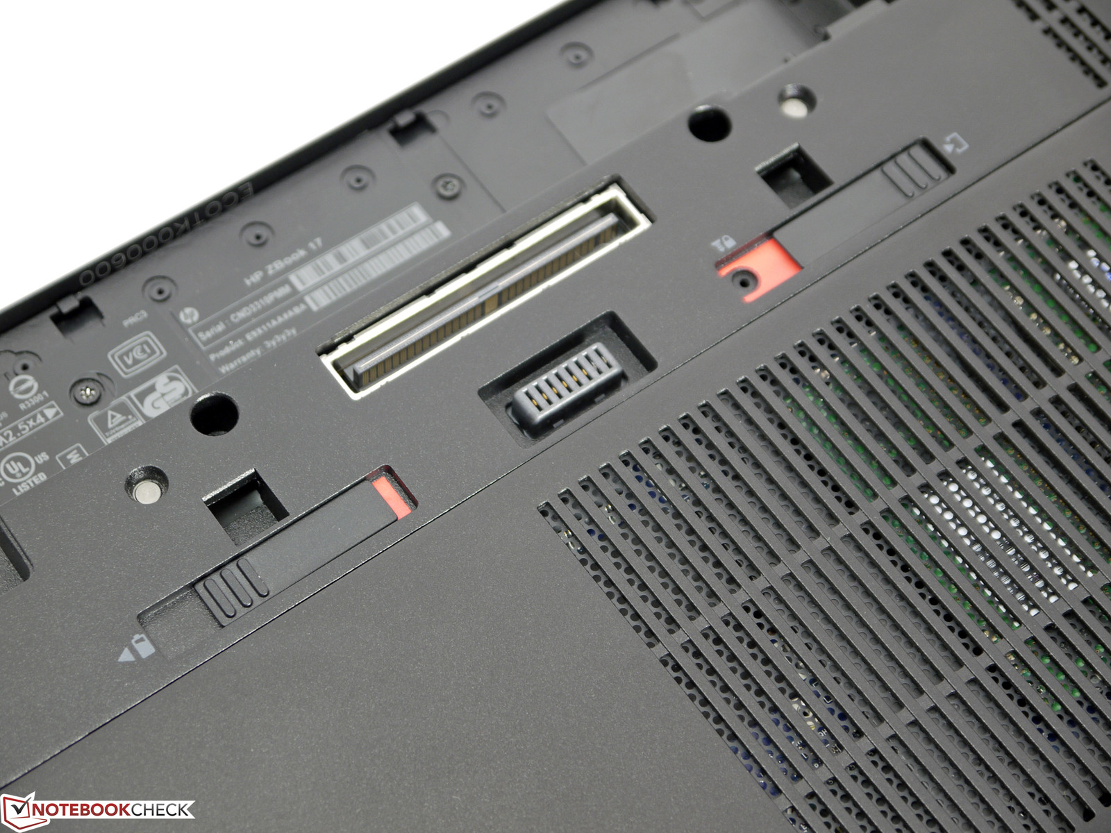 Ansonsten hat man noch 3 USB-3.0-Ports (1 x mit Ladefunktion), einen USB-2.0-Port, einen normal großen Displayport, VGA und einen Cardreader zur Verfügung. Um fehlende Schnittstellen erweitern zu können, besitzt das HP ZBook einen ExpressCard/34/54-Slot an der linken Seite und einen Dockingport am Unterboden. Auch die Thunderbolt-Schnittstelle könnte dazu genutzt werden. Bisher sieht es aber mit Windows kompatiblen Geräten in diesem Bereich sehr mager aus.