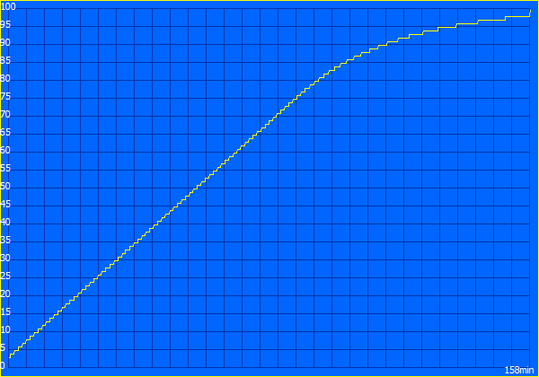 Trotz der vergleichsweise hohen Akkukapazität von 64 Wh fallen die praxisnahe Laufzeiten extrem kurz aus. Bei den Workstations testen wir die minimale Laufzeit neben dem Battery Eater Classic Test (65 Minuten) auch noch mit einer Schleife des SPECviewperf-Benchmarks (hier in Version 11). Das Ergebnis von gerade einmal 52 Minuten stellt also das Worst-Case-Szenario dar. Besonders ernüchternd sind die beiden realistischeren Tests mit einer Bildschirmhelligkeit von rund 150 cd/m² (Stufe 16/20, 157 cd/m²), die mit rund 3:30 h und 3:50 h kaum konkurrenzfähig sind. Besonders bei einem derart leichten und damit mobilen Gerät ist das keine gute Leistung. Etwas besser dürfte sich hier vermutlich die FHD-Variante schlagen. Der Akku ist nach etwa mehr als 2,5 Stunden wieder vollständig aufgeladen.