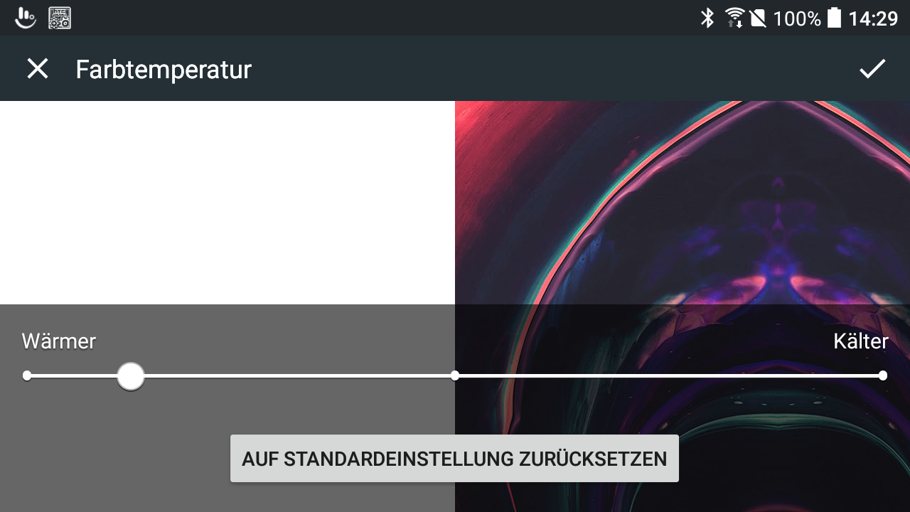 Davon, dass die Helligkeit insgesamt nicht so hoch ist, profitiert auch der Schwarzwert: Dunkle Pixel leuchten nur 0,29 cd/m² hell. Durch diesen sehr guten Wert ergibt sich auch ein sehr gutes Kontrastverhältnis von 1.462:1. Die Farben mögen auf dem Display dennoch nicht so richtig leuchten.