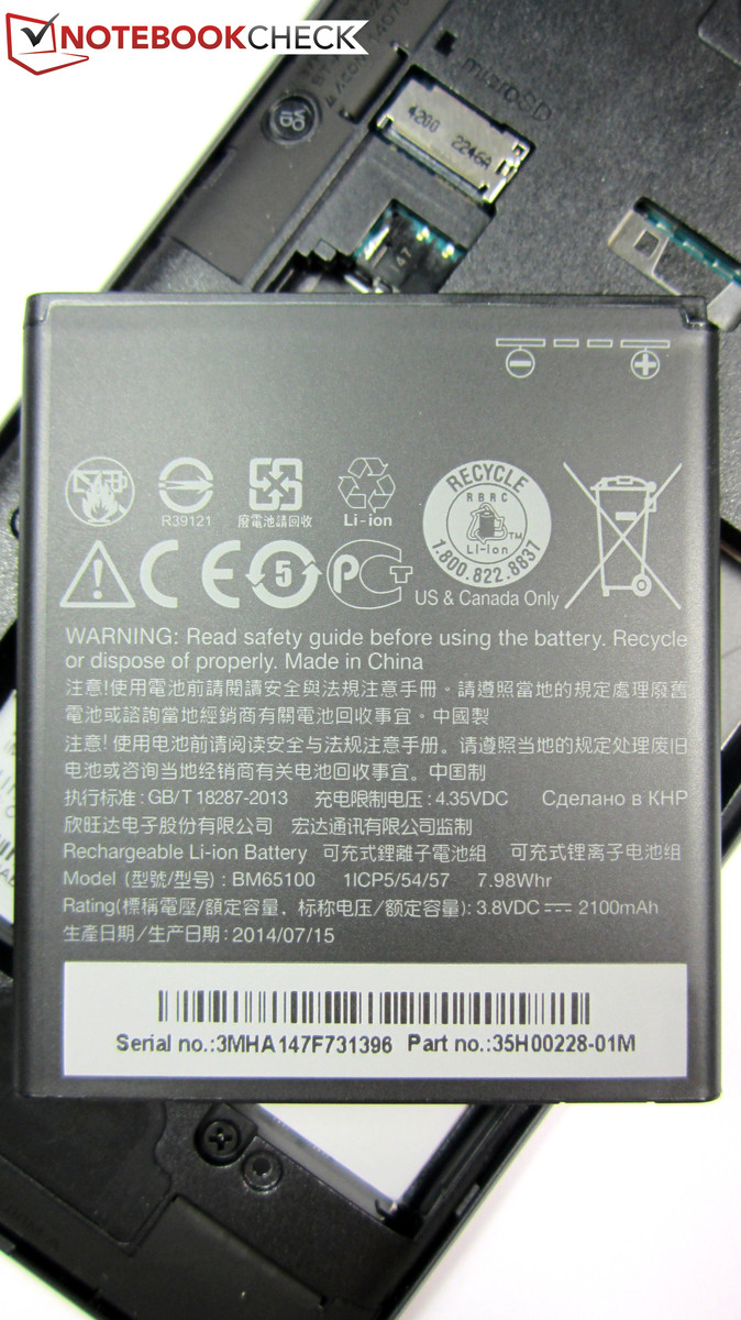 Das Desire 510 bezieht seine Energie von einem auswechselbaren Lithium-Polymer-Akku, der es auf eine Kapazität von 7,98 Wh bringt. Im Betrieb kommt das HTC auf eine maximale Leistungsaufnahme von 5,2 Watt und geht damit vergleichsweise sparsam zu Werke. Im direkten Vergleich sind aber alle Konkurrenzmodelle noch etwas grüner unterwegs. So verlangt das 5,2 Zoll große Sony Xperia T3 nur nach maximal 4,9 Watt, während das LG G2 Mini mit 2,4 Watt auf weniger als die Hälfte der Leistungsaufnahme des HTC-Testkandidaten kommt und damit einen ungeschlagen niedrigen Stromverbrauch erreicht.