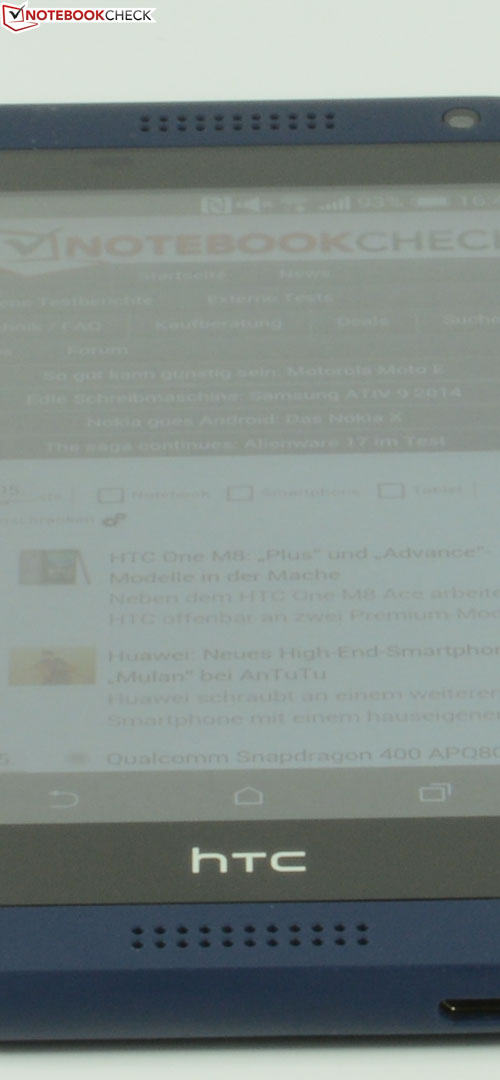 Bei der Blickwinkelstabilität muss das HTC Desire 610 trotz der TFT-Display-Technologie kaum Federn lassen. Selbst bei extremen Blickwinkeln bleibt der Bildinhalt farblich ziemlich stabil und nimmt nur an Helligkeit ab. So etwas kennen wir sonst nur von IPS-Displays. Eine sehr gute Vorstellung!